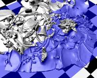 MindSpace worked with Kelley Barnes, while she was completing her Masters at the University of Canterbury, on the taphonomy (Forensic Paleontology) of a Pleosaur fossil held at the Canterbury Museum. Kelley was essentially trying to build up a series of events surrounding the life and death of the Pleosaur, based on the ‘snapshot’ recorded in the fossil. Her job was made harder by the fact that the fossil was very large (about 2m by 2m) and heavy, and in the past had been broken into 15 parts to aid transportation. Part of her research involved digitising each part, with the assistance of Applied Research Associates’ (ARANZ) FastScan - a portable, handheld, 3D laser scanner. MindSpace took these virtual objects, assembled them back into a single fossil, optimised the geometry for 3D viewing and manipulation on a computer and looked at different ways of enhancing the analysis of the fossil, including superimposing contour lines and inserting a proposed water-sediment boundary plane. Two Augmented Reality simulations/educational games were also created which involved rebuilding some of the fossil from five of its parts, and inserting a proposed water-sediment boundary plane across the whole fossil.