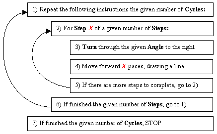 In this interactive activity you can create a dazzling array of patterns by having a simple action repeated any number of times. This activity is like a simplified, visual version of the LOGO drawing language.