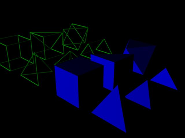 This is an introduction to geometry - it provides one example of 4, 5, 6, 7 and 8 sided objects. Some of these objects are regular and some are not, and therefore there is a good selection of 3D symmetry examples. There are also two examples of 5 sided objects for comparison, and an example of sub objects (the 8 sided object can be thought of as two 4 sided objects stuck togeather. When each object is touched by the information paddle, it is shown in wireframe mode, and the final version of this draft module will show useful information on each object.